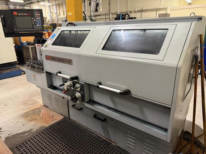 A very nice 2013 built XYZ Proturn SLX 425 x 1250 with SLX control, quick change tool post & holders, 3 & 4 jaw chucks, travelling and fixed steadies, electronic handwheels, air rise tailstock and coolant equipment