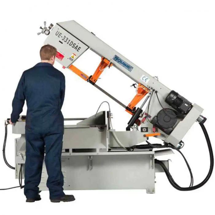 Semi-Automatic bandsaw with two way mitre up to 60 degrees. Variable blade speed, Hydraulic Vices and Powered Bow raise all as standard.