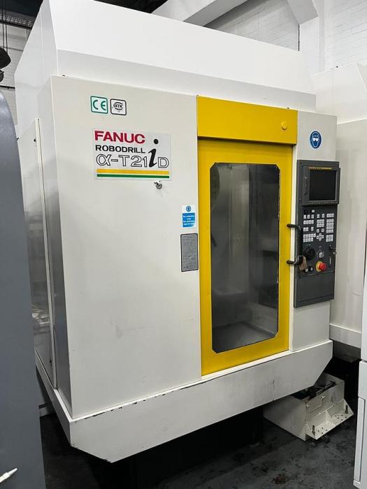 A one owner and well maintained 2003 built Fanuc RoboDrill T21iD with Fanuc 16iMB control, BT30 10,000RPM Spindle, 21 Tool ATC, a Zero Point sub plate, machine vice & coolant equipment. Very clean machine!